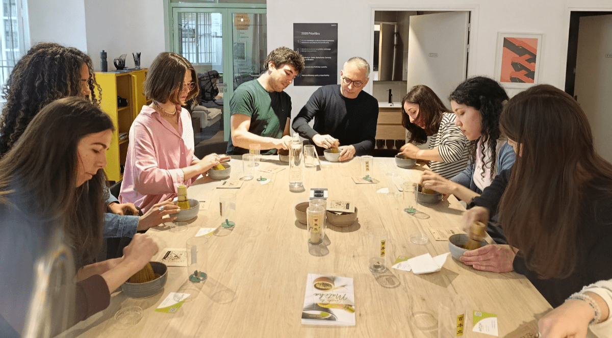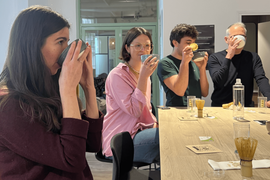 J’avais été invitée pour faire découvrir le matcha à leurs employés, dans le cadre d’un moment de détente et de découverte. Certains participants connaissaient déjà cette poudre verte, d’autres la découvraient pour la toute première fois, à travers cet atelier dégustation. Mais une chose est sûre : tous étaient curieux de comprendre ce qu’était vraiment le thé Matcha, au-delà des clichés ou des boissons sucrées des coffee shops. Et moi, j’étais ravie de pouvoir leur transmettre un peu de ma passion.